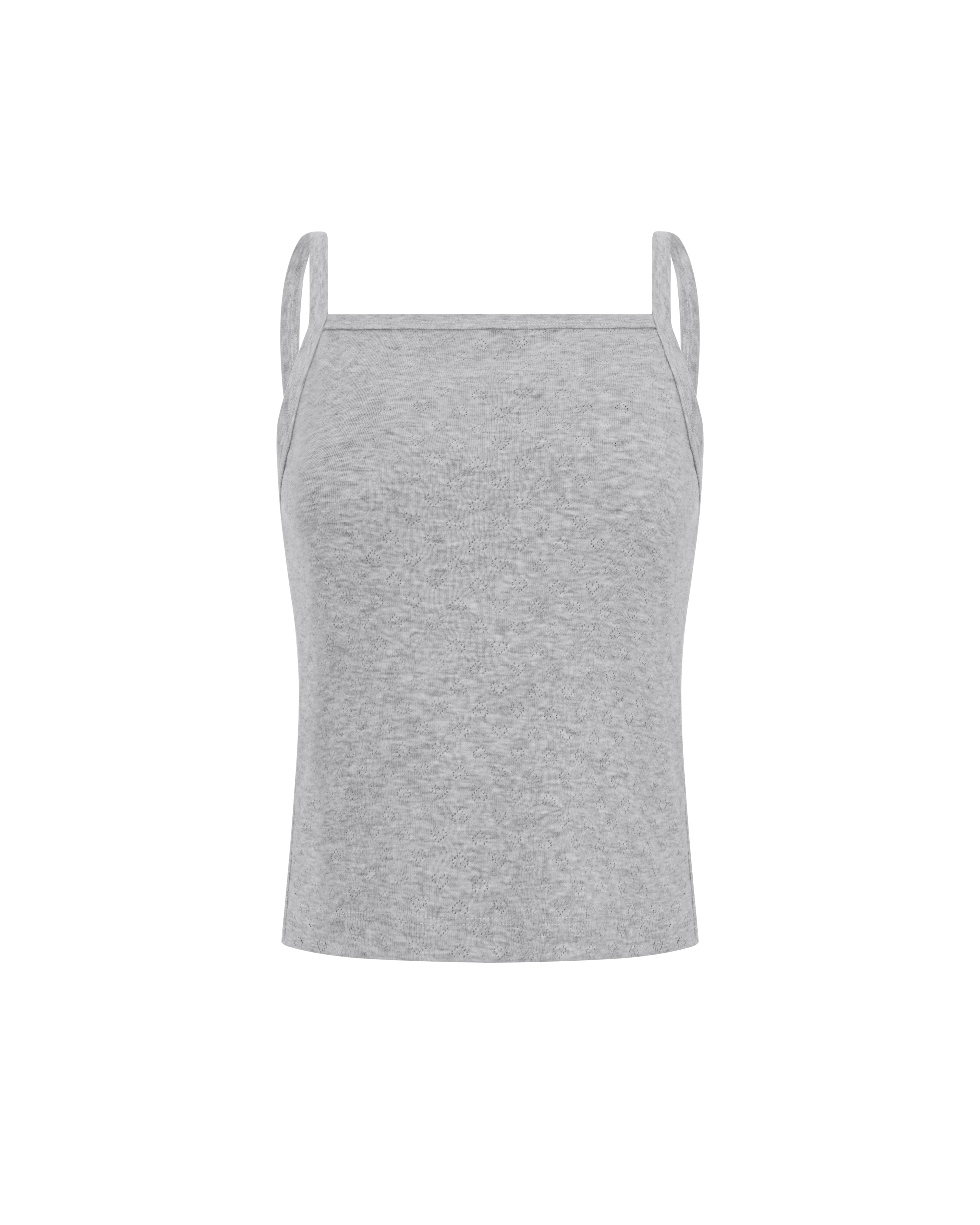 Тонкі брітелі виконані з основного матеріалу. Високоякісна бавовняна тканина з перфорацією, вона забезпечує повітропроникність, що робить майку супер комфортною для домашнього використання.