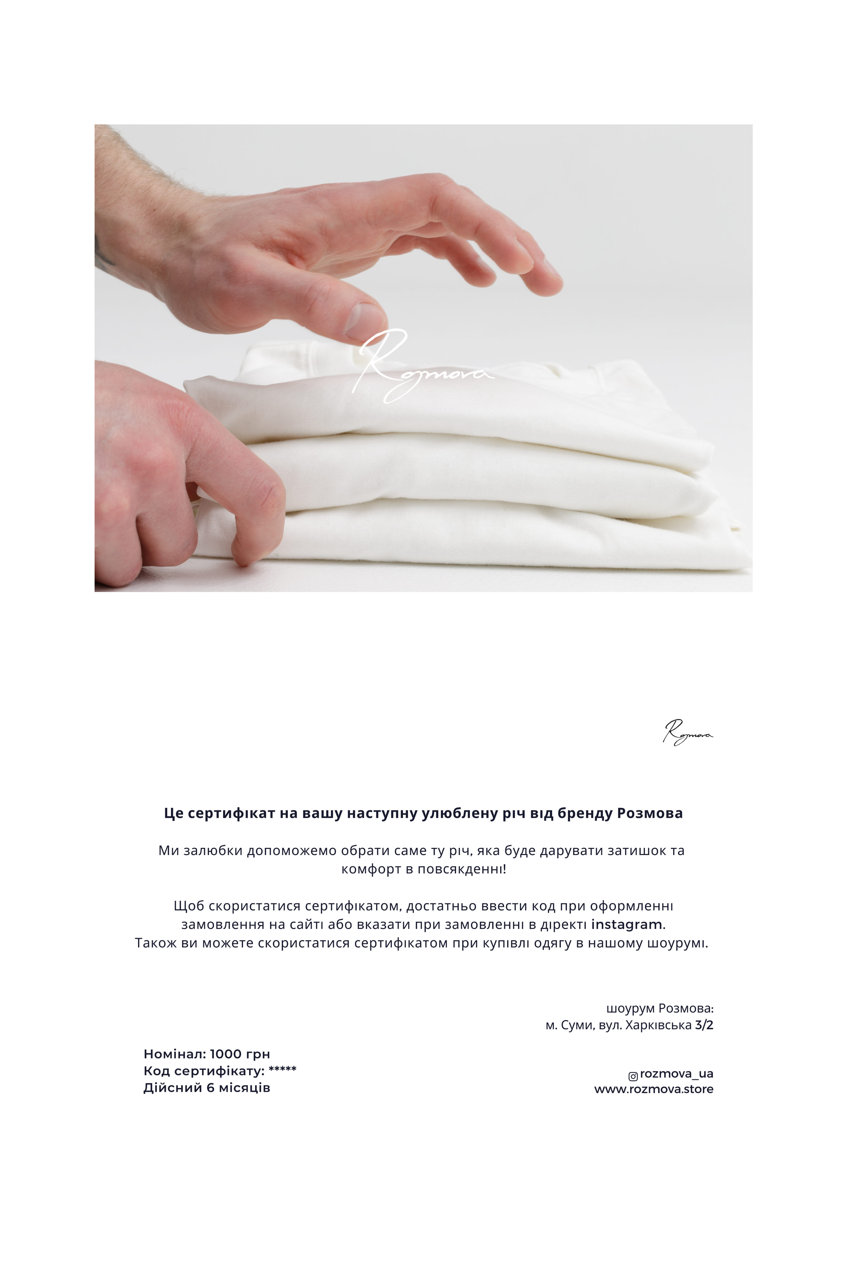 Подарунковий сертифікат від Rozmova доступний у двох форматах: електронному та фізичному.Якщо вам потрібен саме фізичний сертифікат, будь ласка, зазначте це в коментарях під час оформлення замовлення.