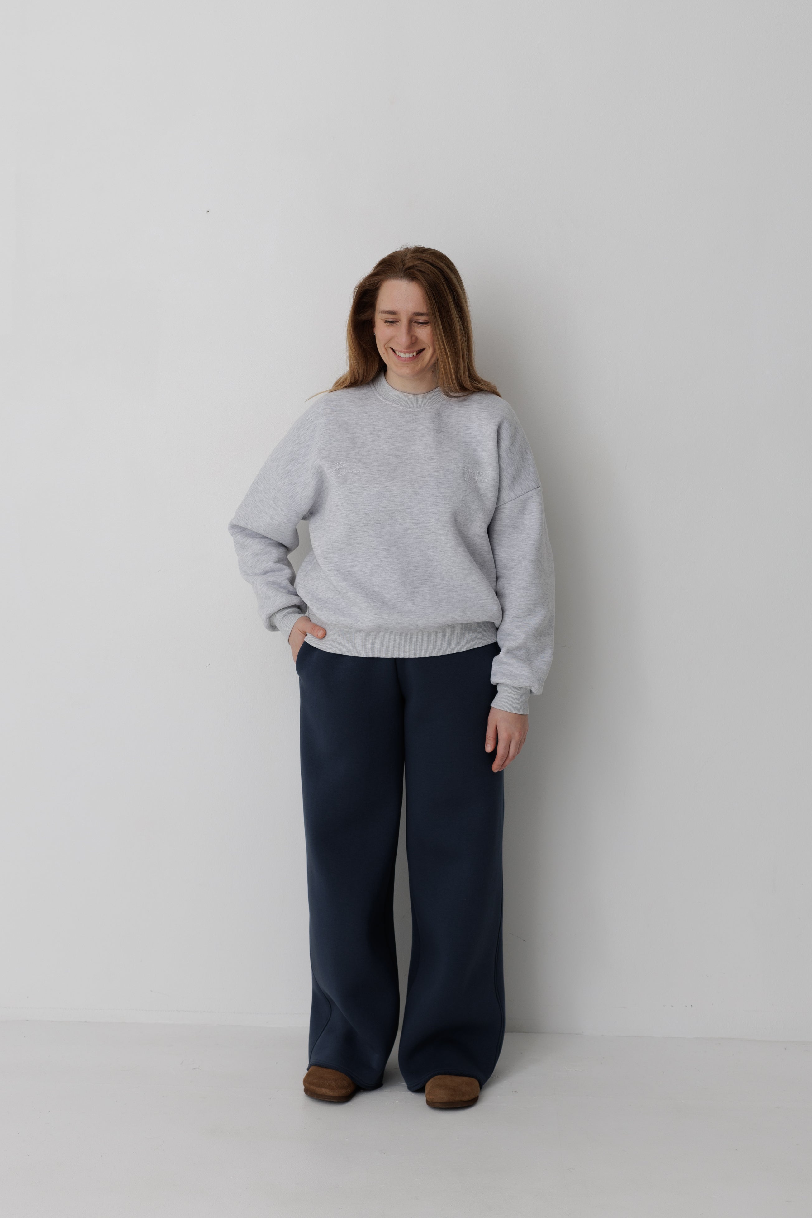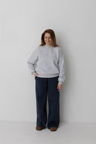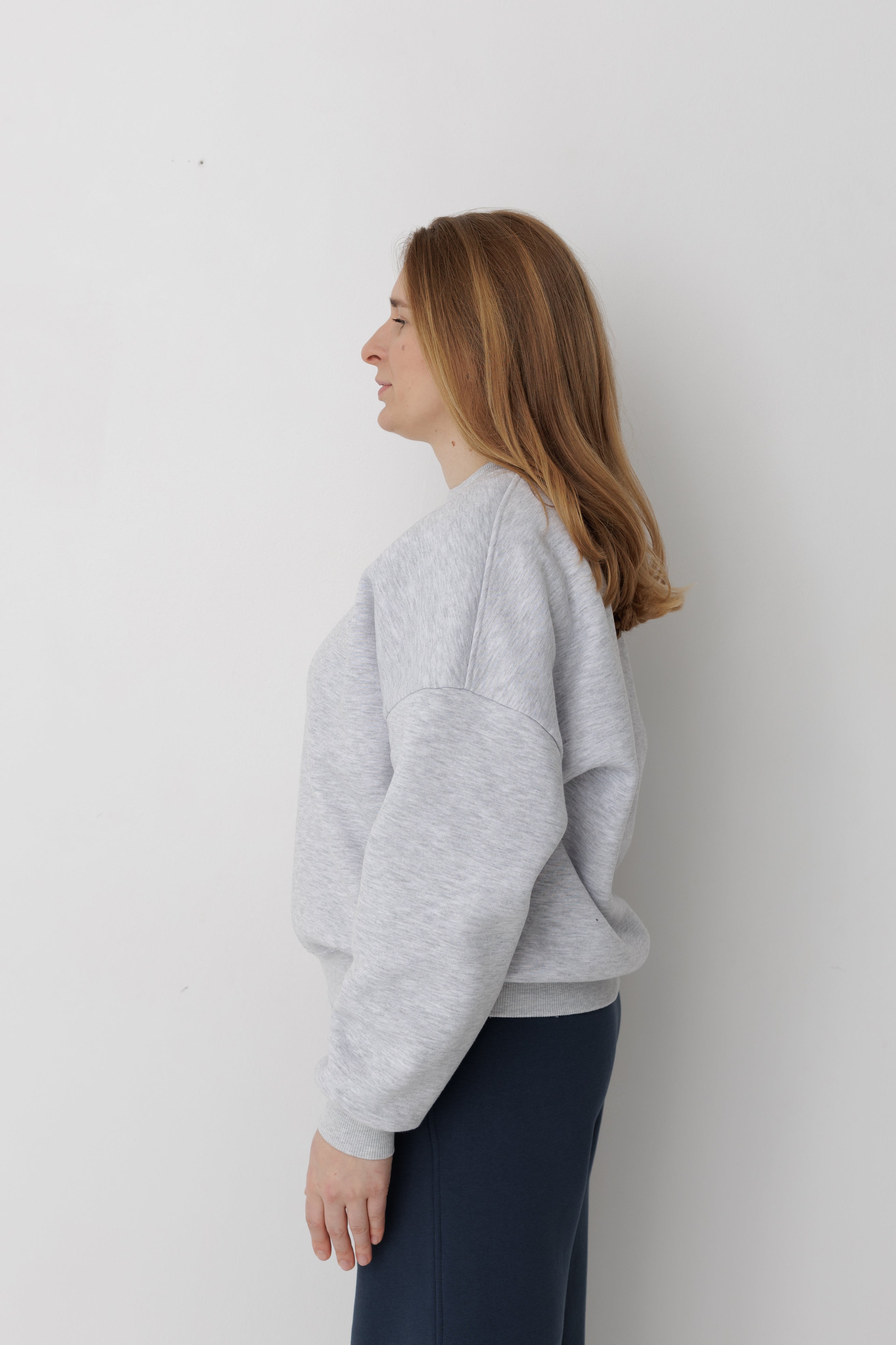 Крій світшоту помірно-вільний, зі спущеним плечем та стандартною довжиною.