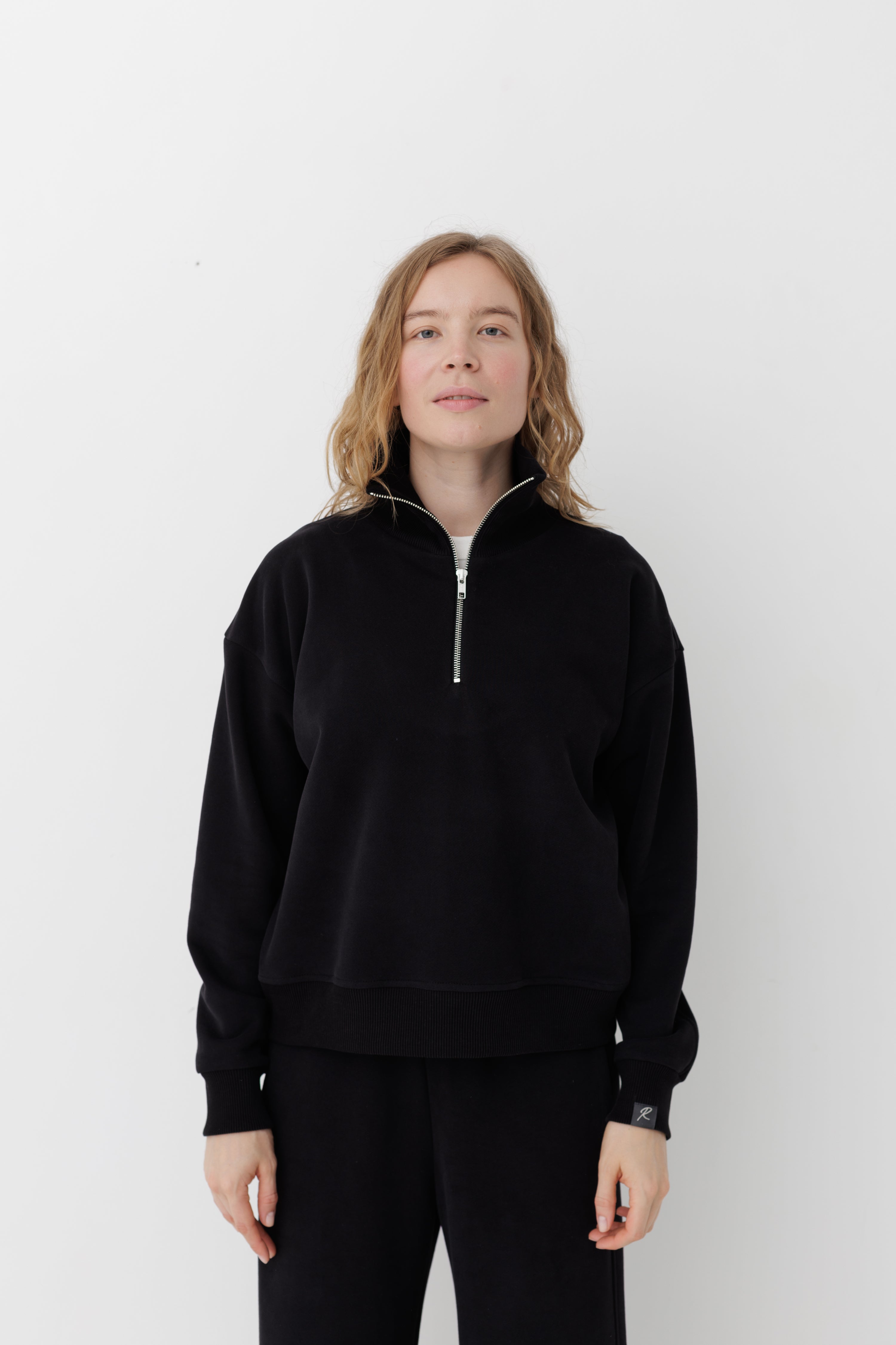 Жіночий світшот з блискавкою 1/3 з преміального футеру діагонального плетіння.