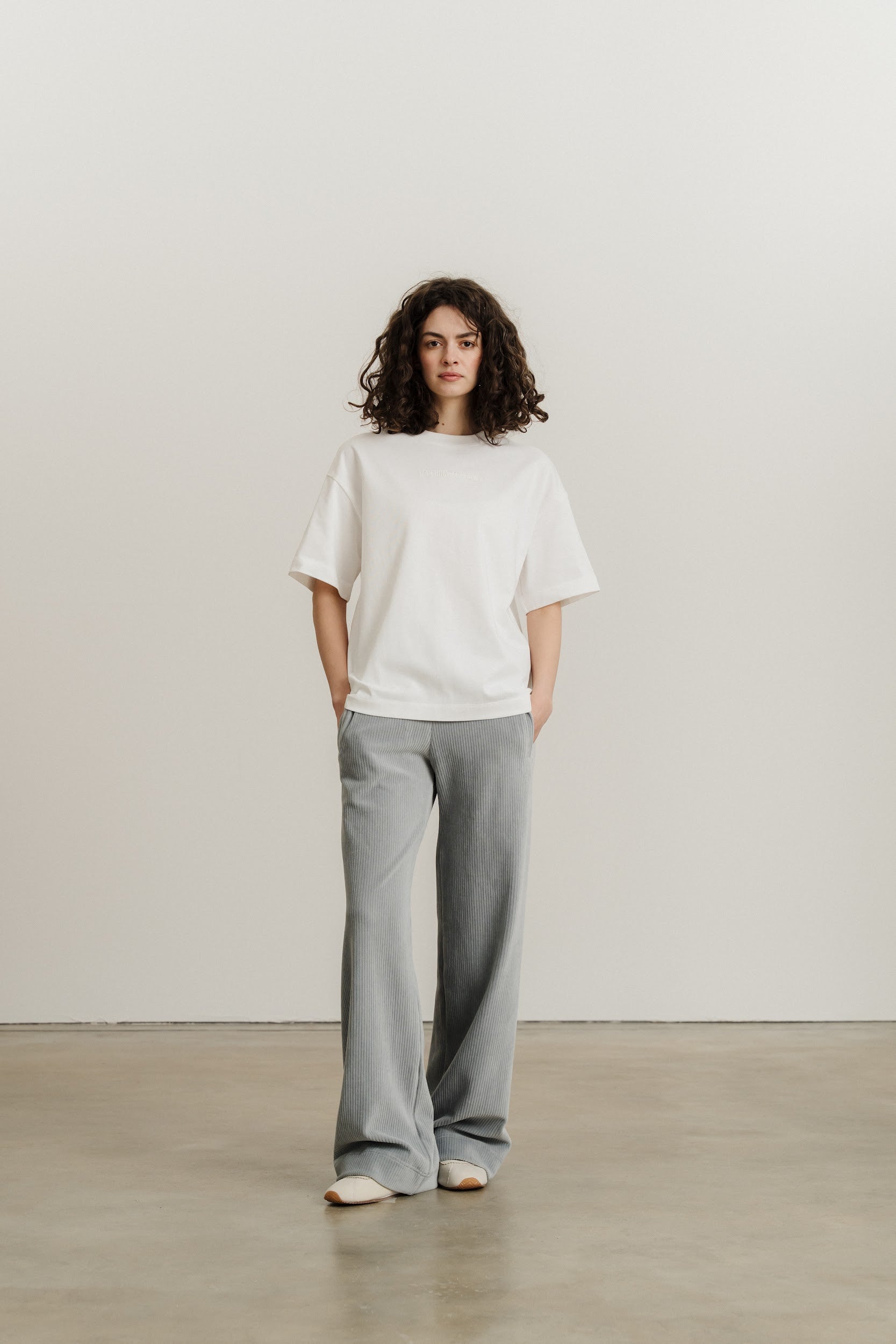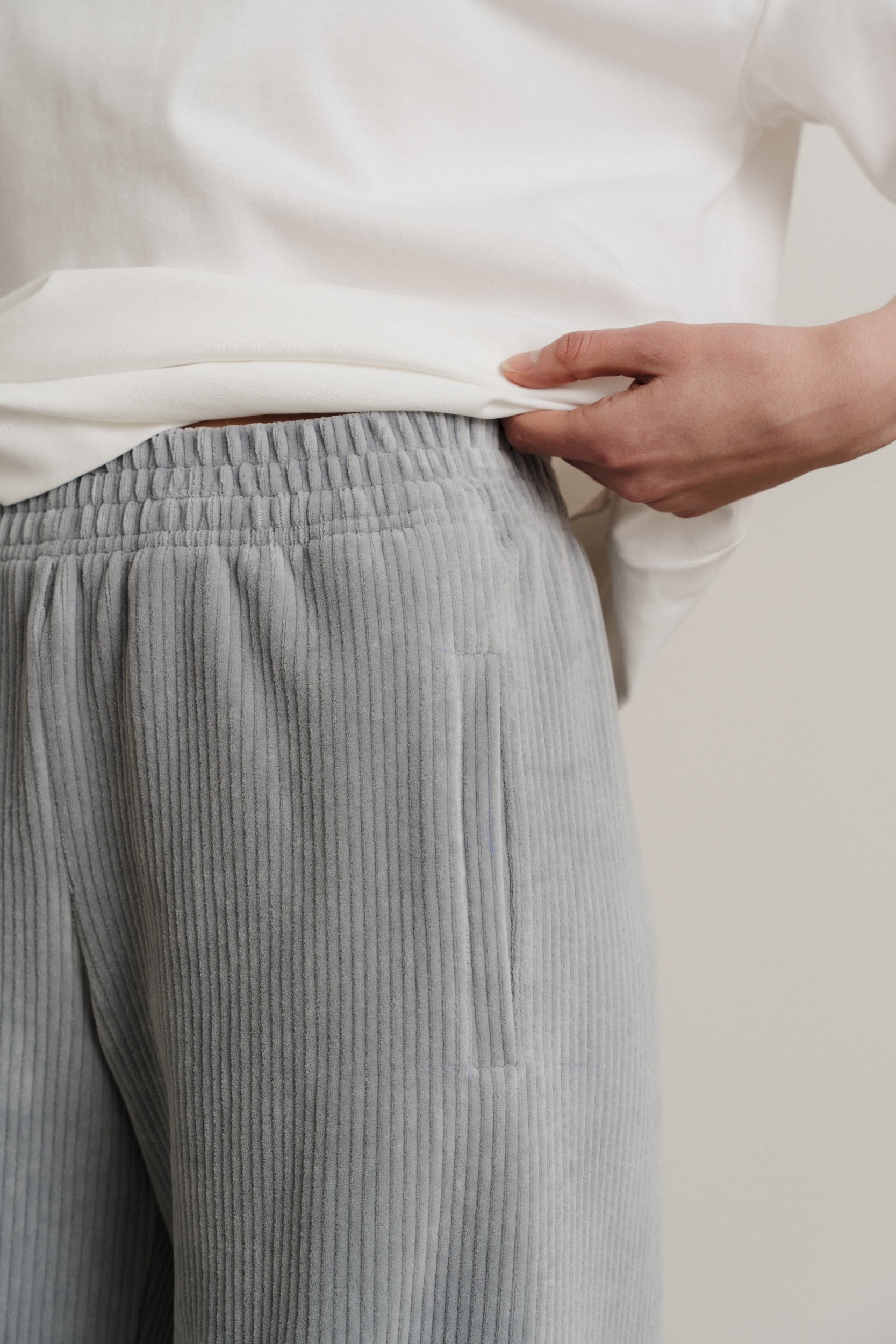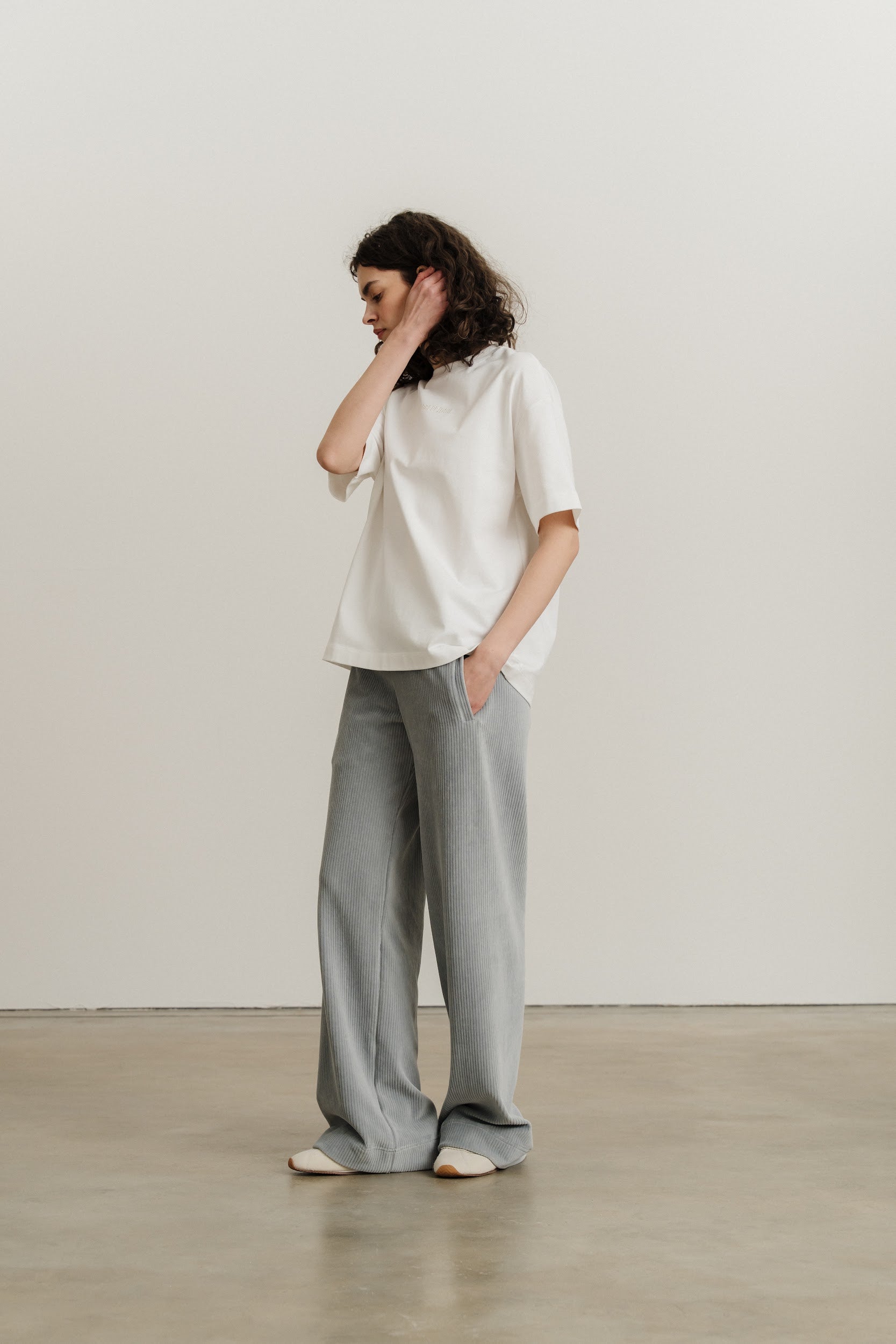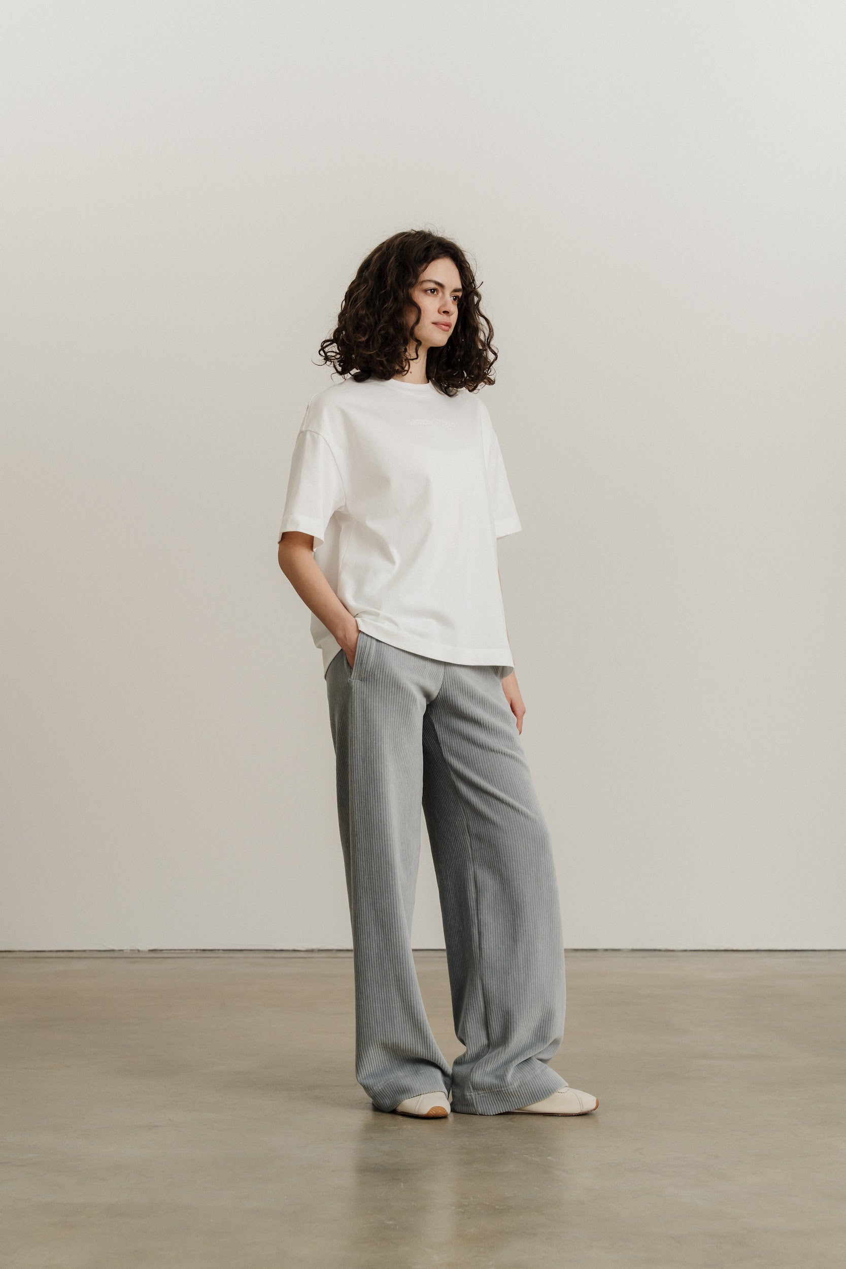 Широкі вільні прямі штани виконані із трикотажного вельвету.