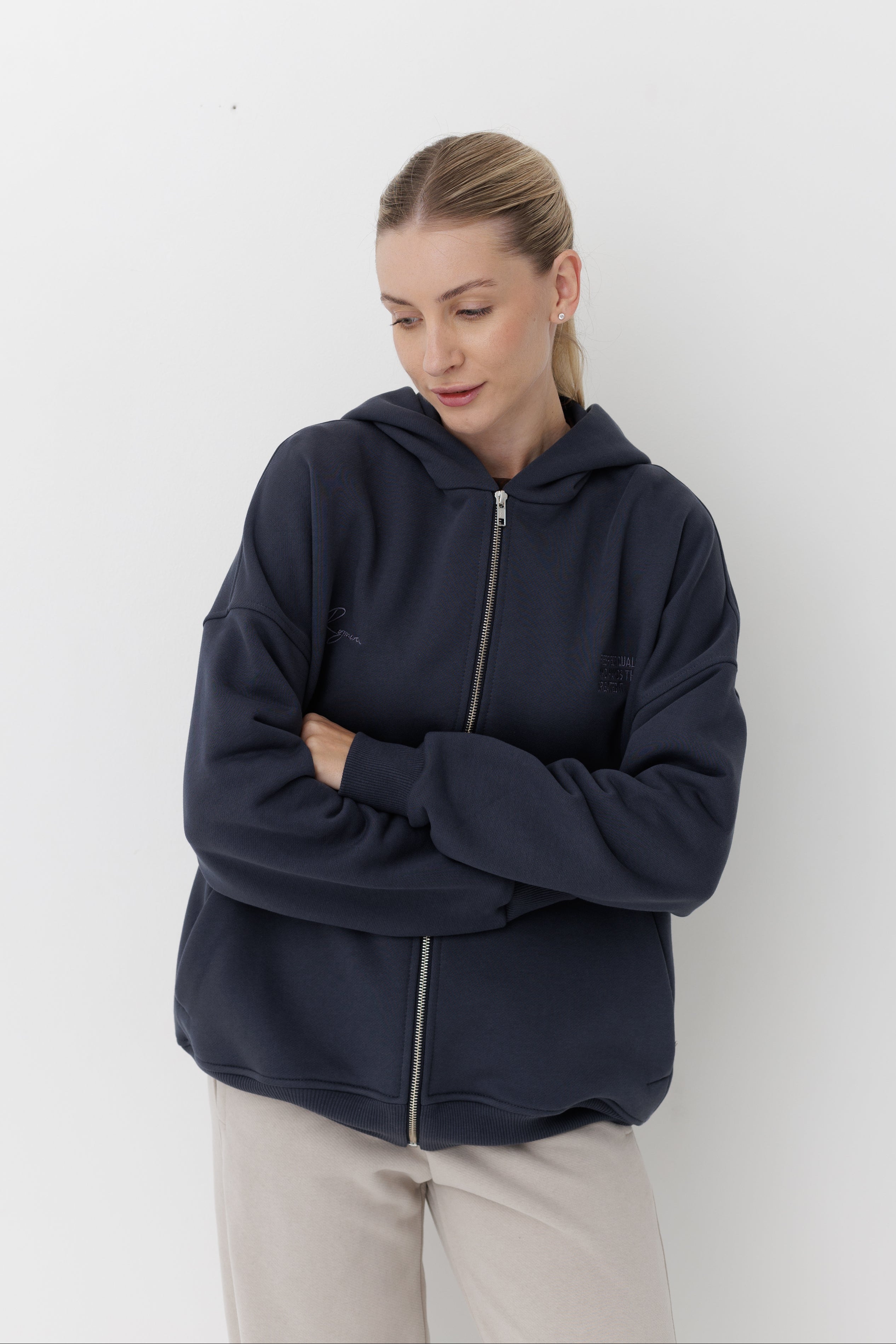 Бавовняний худі з металевою блискавкою у форматі унісекс.
